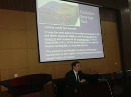 师生作学术报告。报告会由副院长卓卫东主持。 报告主要介绍了“公路桥梁的抗震性能及最新进展”。颜文晖通过展示从1964年至2011年以来世界重大地震中桥梁受震破坏的图片,对影响桥梁耐震性因素进行了详细分析。他结合1994年美国Northridge地震,因斜桥、弯桥短柱部分设计不当而遭破坏的案例,强调了桥梁设计、评估及加固的重要性,并希望与会师生在以后进行桥梁设计时应注意桥梁短柱加固等细节问题。同时也给我们讲了关于今年3月11日日本关东大地震栋梁损害的情况。最后,颜文晖同与会师生就公路桥梁方面的知识进行了进一步交流。